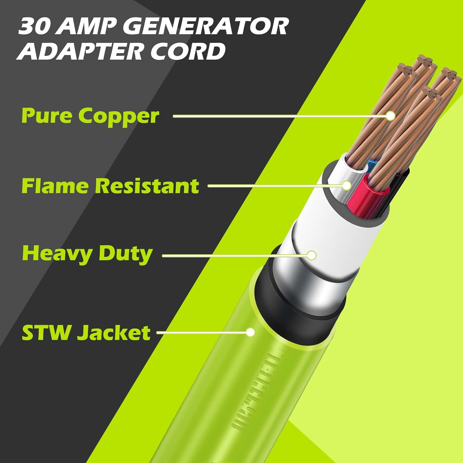 - Heavy-duty copper wiring coated wire with flame retardant, UV-resistant, STW water-resistant PVC jacket, ETL Certified.