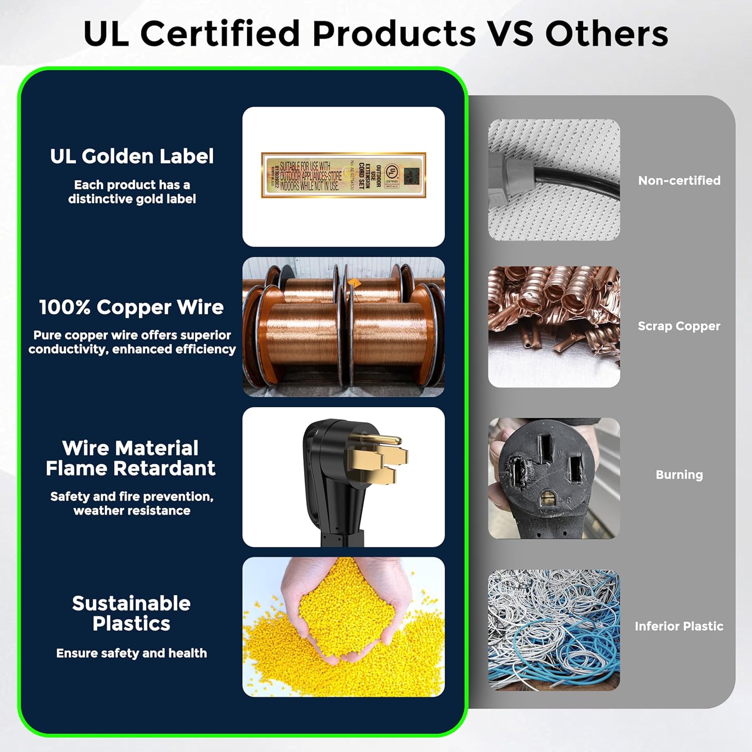 - Specification: UL Certification, Heavy Duty STW AWG 6/3 + 8/1 Wire, 50A NEMA 14-50P Male to NEMA SS2-50R Female, Rated: 125/250 volt, 6250/12500 watt