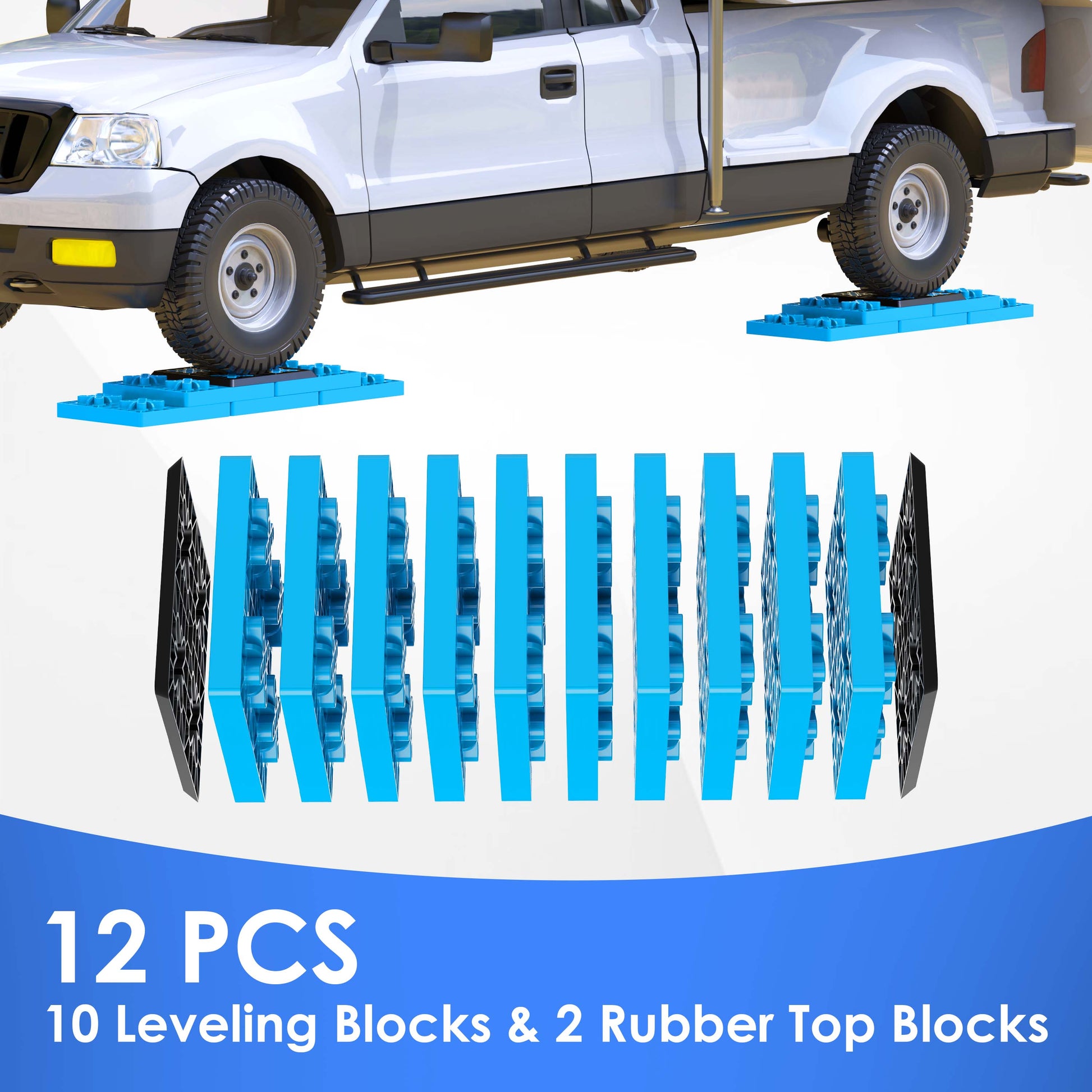 Heavy Duty RV Leveling Blocks 12 Pack, Interlocking Design Camper Leveling Blocks with Packing Bag, Ideal for Leveling Single and Dual Wheels (Blue)