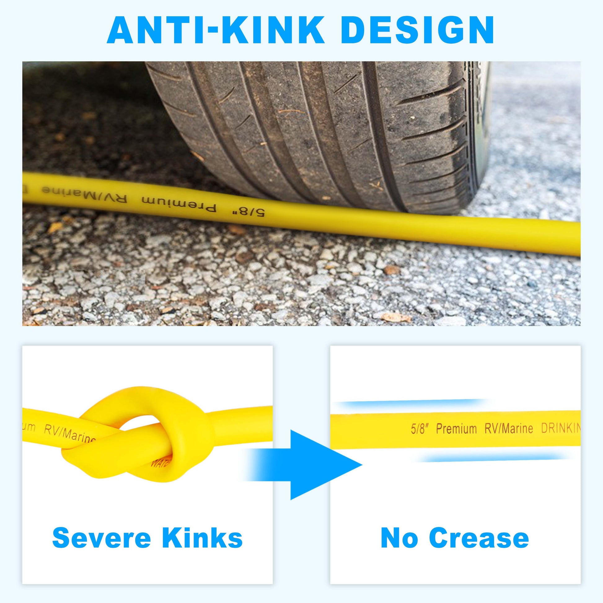 - Long Life-span & Easy to Store: The RV water hose is made of a 3-layer hybrid polymer that has better abrasion resistance and makes coiling the hose much simpler. The rv hose has the resistance to kinks, bends, and tangles. Greater Lifespan. Come with a pretty storage bag that makes it simple to carry around and store.