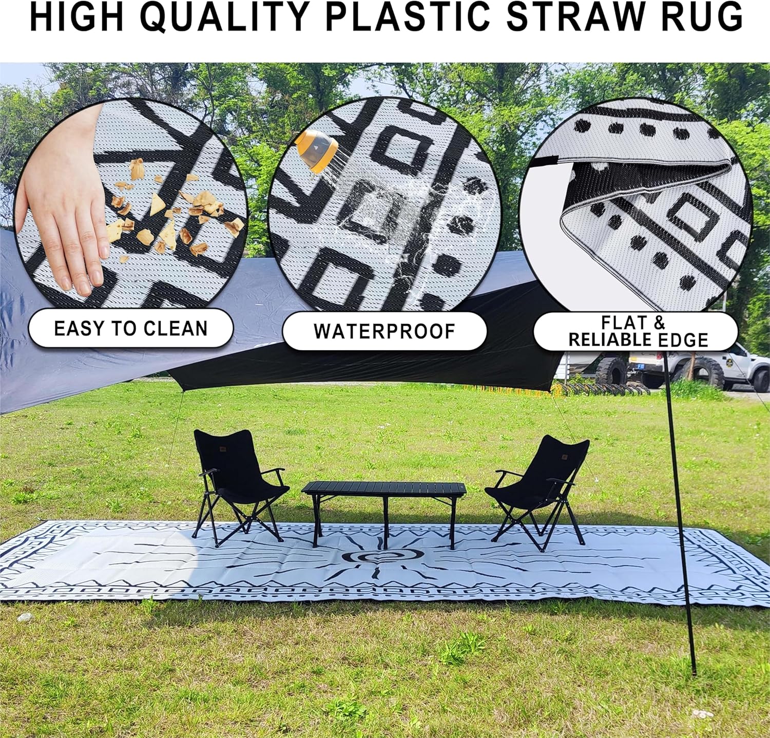 - WIDE USE & ECONOMICAL: Perfect for RV travelers, picnics, backyard, deck, and beach, this outdoor area rug is versatile and can replace traditional carpets. And our plastic outdoor rug comes with a storage bag so you can carry and store it easily. It's also economical, making travel more affordable.