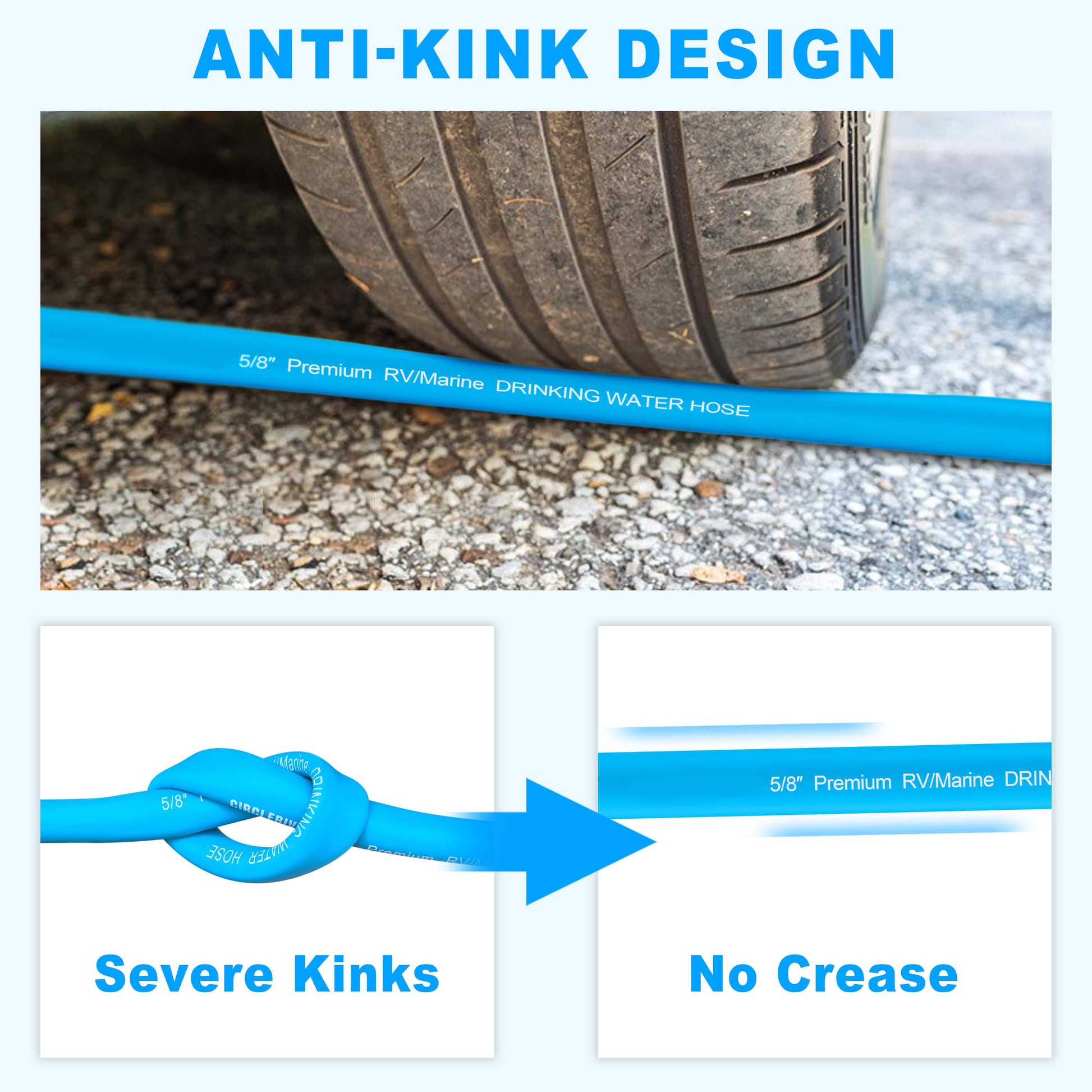 RV Water Hose, 5/8" Premium RV Drinking Water Hose for RV, Camping, Marine, Trailer and Truck, BPA Free, Anti-Kink and Leak-Free, Drinking Water Safe-Blue